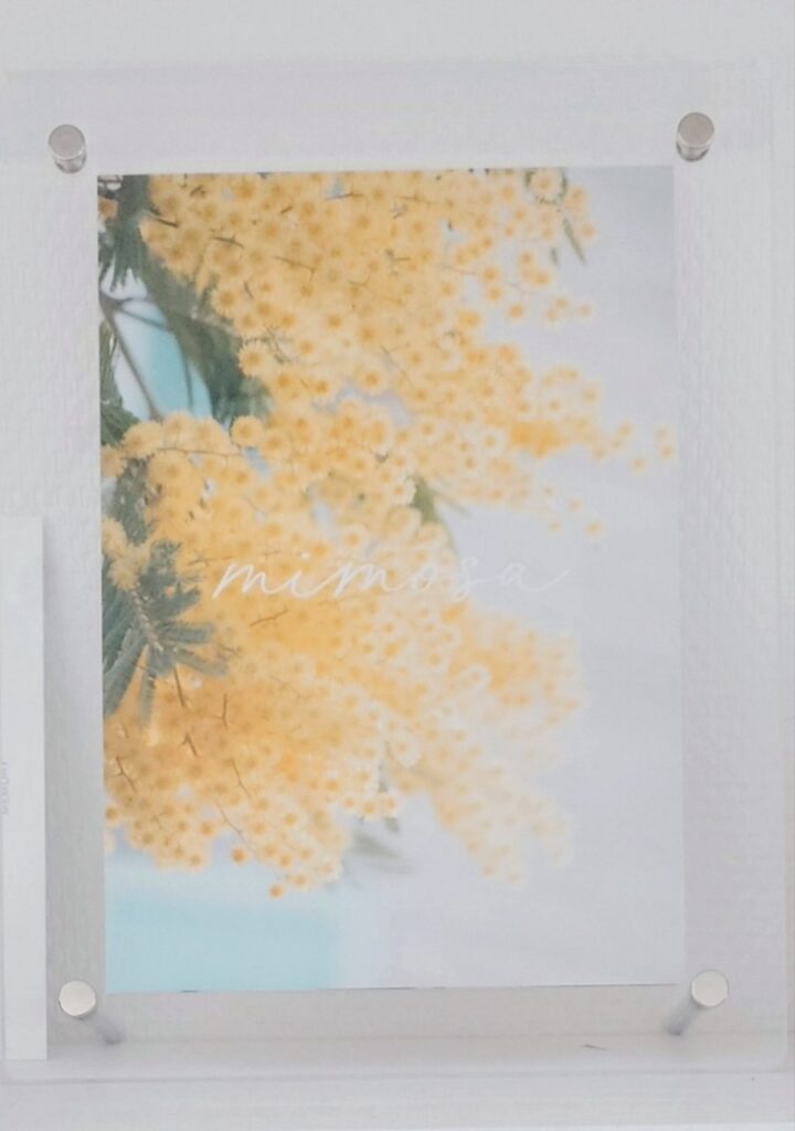 ミモザの花を飾る代わりに、ミモザのポスターアートを飾ってみました。